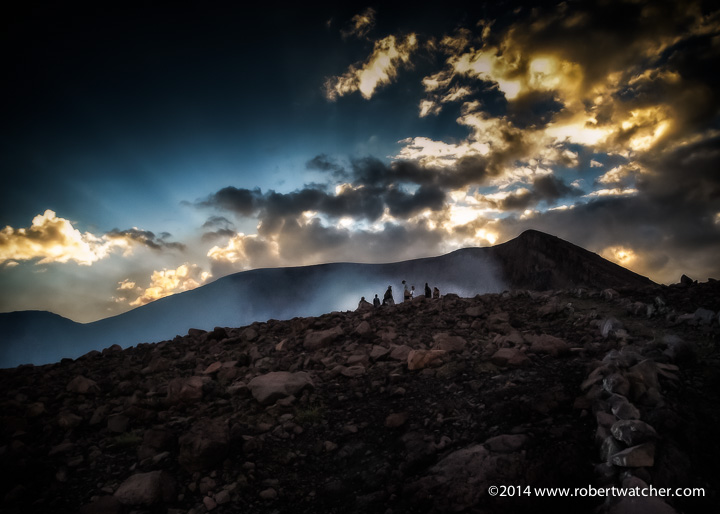 The reward for all our effort is standing on the crater edge listening to the power we know is beneath our feet. As we peaked over the edge we could see some glow of lava which made us all the more eager for the darkness of night to come.