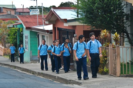 Costa Rica is very proud of it's education system and stresses education very strongly. After being here only for a short time you can't help but notice the children on their way to school, mainly because uniforms are mandatory for all public schools. There seems to be different uniforms for different ages from powder blue shirts and navy pants to sage green golf shirts and black pants. They really do look nice when you see them walking down the streets, laughing and talking as kids should.