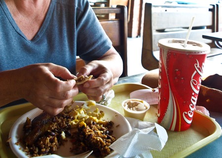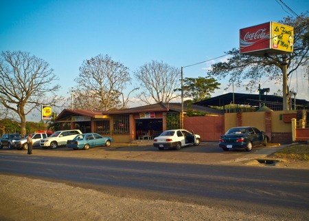 La Fiesta del Maiz: According to some of the travel guides this is the one stop in La Garita not to be missed. Dubbed the "Corny" restaurant due to the fact that alot of the food is corn based. Other local fare is also available. Very busy on the weekends apparently. Located on Hwy. 3 about 2km from the Interamerican Hwy. 1. I had the pinto completo, -beans and rice, egg and corn tortillas. Very good and typical of a Costa Rican meal. As always it was served with mayo on the side. Fried bananas for that sweet at the end of your meal.