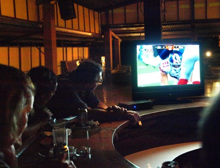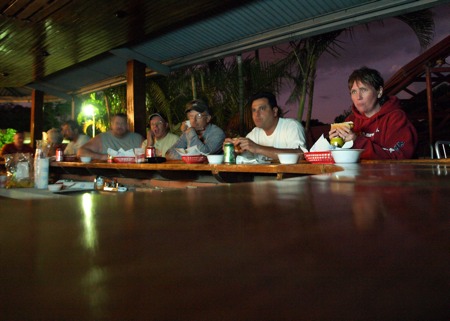 What an awesome game! Rick, Norma and the gang here had everyone over to the new bar area to watch the game. They had beer and pop, hot dogs, Rick's famous Costa Rican salsa and chips, Norma's homemade potato and pasta salad and wings. What a feast!!