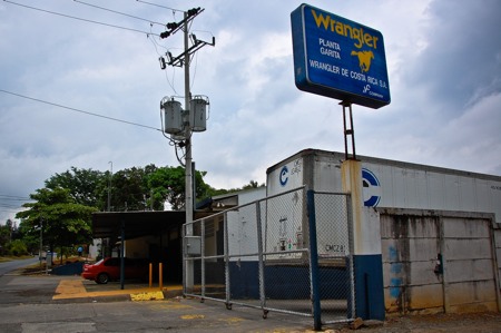 This is a picture of the La Garita Wrangler factory located on Hwy.3 between the Interamerican Hwy. and Zoo Ave. Due to it's location , you will see many Ticos and Ticas wearing Wranglers as they are sold quite inexpensively here in Costa Rica.